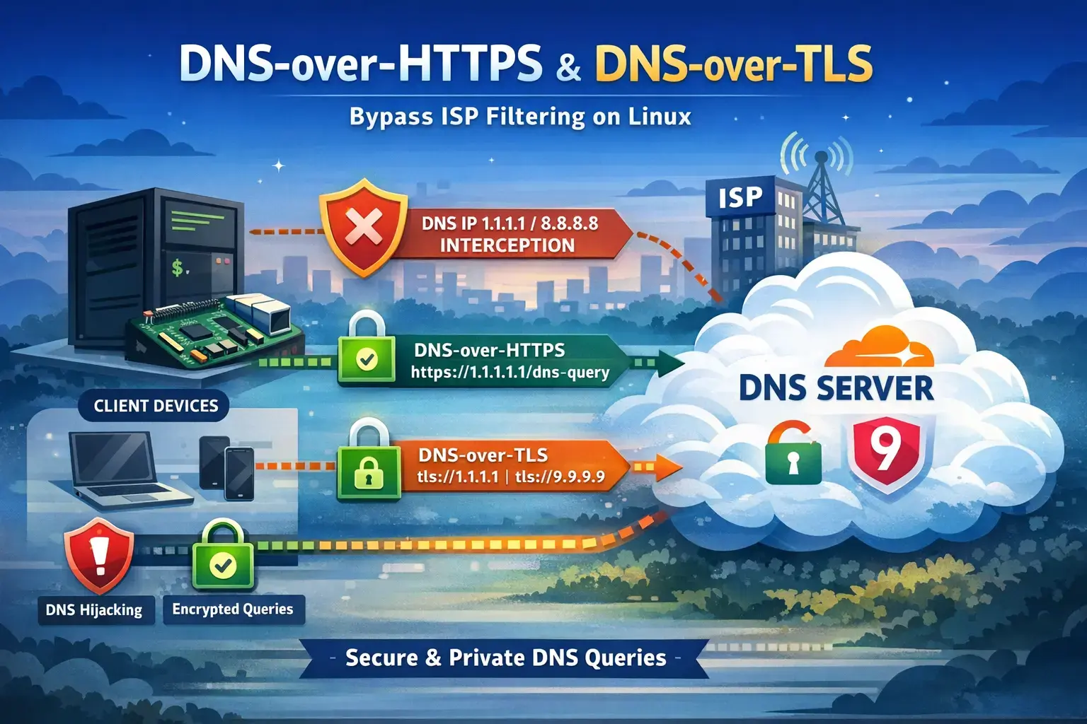 Pada beberapa kondisi, penggunaan DNS biasa (misalnya 1.1.1.1 atau 8.8.8.8) masih dapat terpengaruh oleh filtering ISP. Solusi yang lebih stabil dan aman adalah menggunakan DNS terenkripsi seperti DNS-over-HTTPS (DoH) atau DNS-over-TLS (DoT).
